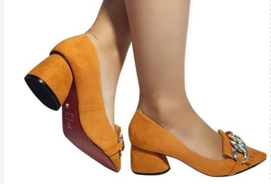 Scarpin Suede Ferrari com Franja e Corrente 5 cm